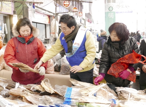 김장주 경상북도 행정부지사가 6일 도민들과 관광객들이 쾌적하고 안전한 전통시장에서 즐거운 시간을 보내고, 시장 상인들이 웃을 수 있는 행복 시장을 만들기 위해 설맞이 전통시장 장보기와 안전을 점검했다.