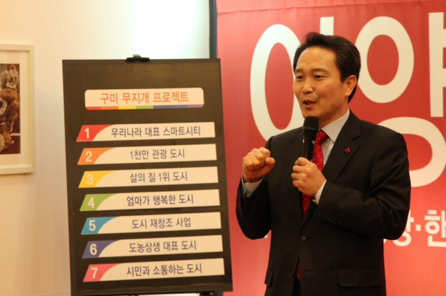 그가 내세운 7대 혁신 해결책 ‘구미 무지개 프로젝트’는 △우리나라 대표 스마트시티 △1천만 관광 도시 △삶의 질 1위 도시 △엄마가 행복한 도시 △도시 재창조 사업 △도농상생 대표 도시 △시민과 소통하는 도시 등 일곱 가지 공약을 담고 있다.