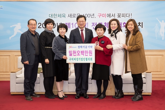 구미여성기업인협의회(회장 김묘라)가 23일 구미시 국제통상협력실에서 이묵 구미부시장을 비롯한 회원들이 참석한 가운데 구미시장학재단에 1천500만원의 장학금을 전달했다.