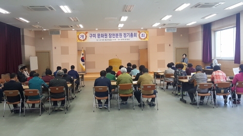 구미문화원 장천분원(분원장 사공 호)이 지난 달 30일 장천면 종합복지회관 대회의실에서 류은주 면장, 구미문화원 라태훈 원장, 이홍희 도의원, 권기만·한성희 시의원, 장천면 분원 회원등 40여 명이 참석한 가운데 2018년도 정기총회를 가졌다.
