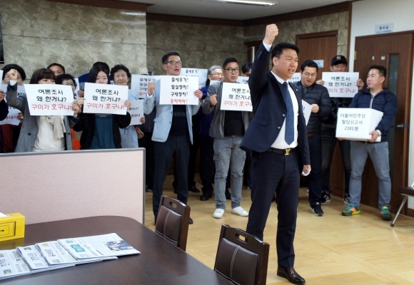 더불어민주당 박종석 예부후보가 지난 13일 경선에서 배제되자 이에 반발한 100여명의 지지자들이 16일 경북도당을 항의방문 했다.