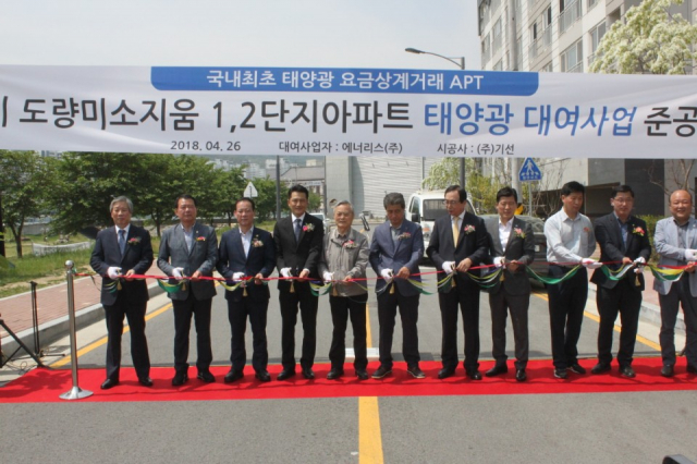 구미시 도량동 미소지움 아파트는 26일 아파트 단지에서 태양광 대여사업 발전설비 준공식을 가졌다.