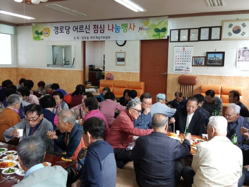 주최측은 이날 참석한 구포,성원 아파트 어르신 1백여명에게 정성껏 마련한 음식과 다과, 음료수를 제공했다.