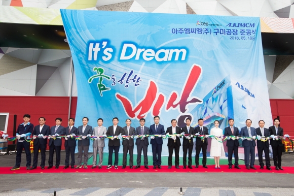 아주엠씨엠㈜(대표 정원창)이 18일 구미국가 4산업단지에 소재한 아주엠씨엠 구미 사업장에서 하이브리드 컬러강판 제품을 생산하는 '아주엠씨엠 구미공장 준공식'을 가졌다.