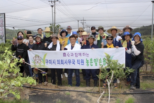 구미시의회 사무국 직원 20여명이 지난 17일 오전 8시부터 고아읍 대망리 블루베리 농가를 방문해 농촌일손돕기를 실시했다.