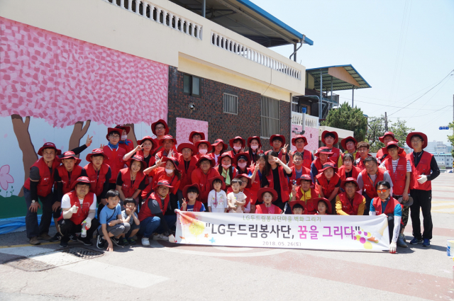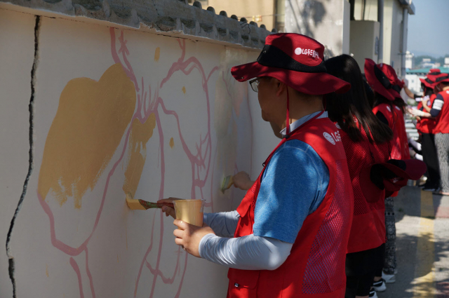 LG두드림봉사단과 임직원 가족들은 지난해에도 문경 모전천을 방문해 지역주민들 산책코스에 벽화봉사를 실시하기도 했다