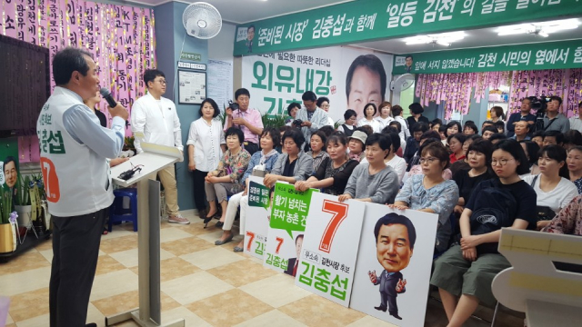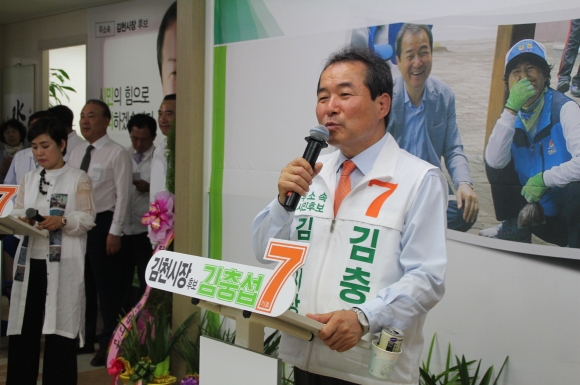 무소속 김충섭 김천시장 후보가 29일 선거사무소에서 선거 사무관계자 및 운동원, 자원봉사자 등 200여 명이 참석한 가운데 6.13 지방선거에서 필승을 다짐하는 결의대회를 가졌다.