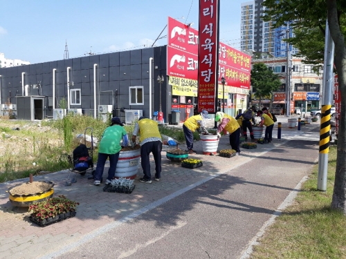 구미시 신평1동(동장 이용우)이 20일 노인일자리 사업 및 공공근로사업 참여자, 동 새마을 부녀회(회장 임칠순) 등 18명이 참여한 가운데 주민센터화단과 관내 5개소 화분에 여름꽃을 심었다. 메리골드와 페튜니아 등 1천800본을 주민센터화단과 관내 5개소의 화분에 심어 거리경관을 한결 상큼하게 해 주고 있다. 이용우 동장은 “앞으로도 지속적으로 화단관리 및 환경정비에 힘써 쾌적하고 살기좋은 동을 만들겠다”고 강조했다.