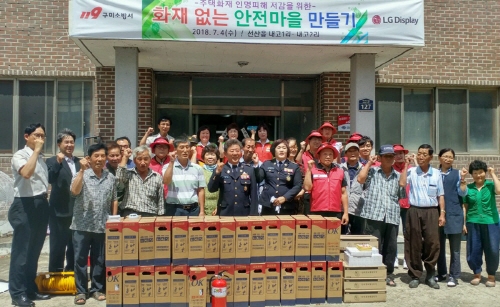 화재에 취약한 소방서 원거리 마을을 대상으로 주택용 기초소방시설을 보급하는 ‘화재 없는 안전마을’사업은 주택 화재로부터 구미 시민의 생명과 재산을 보호하자는 취지에서 ’17년부터 LG디스플레이와 구미소방서가 공동으로 추진하고 있다.