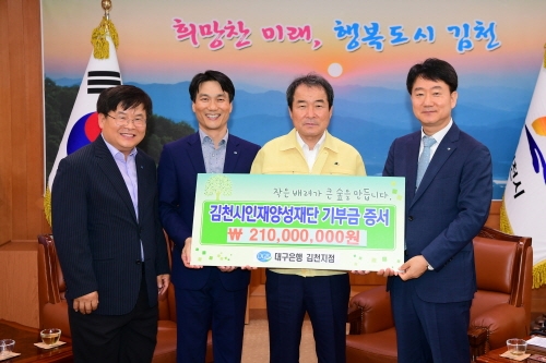 대구은행 김천지점(지점장 박영효)가 지난 10일 김천시 인재양성재단(이사장 김충섭)에 장학기금 2억1천만원을 기탁했다.