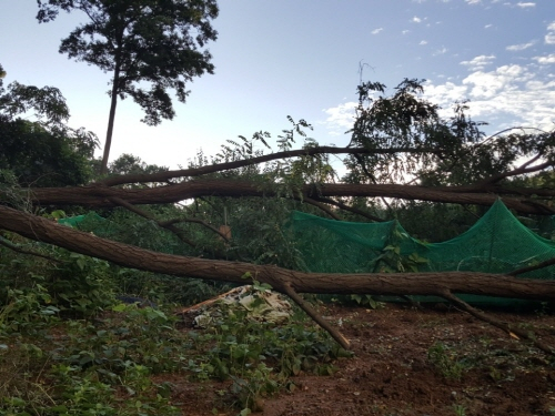 특히 이날 저녁 11시경 구포동 성원아파트 인근야산의 1백여년 된 고목이 농경지를 가로질러 쓰러지면서 이 아파트 순환도로에 주차해 둔 승용차를 파손시키는 등의 피해가 발생했다. 또 쓰러진 나무가 도로를 가로막으면서 통행이 불가능한 상황이었다.