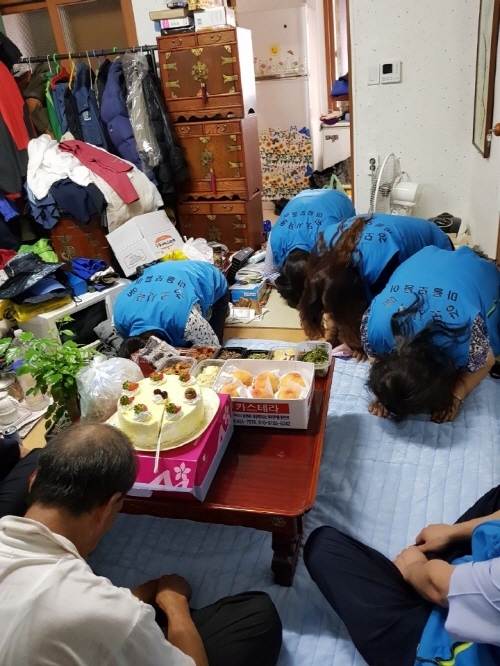 구미시 상모사곡동(동장 조형호) 마을보듬이(공동위원장 이봉원, 조형호)가 지난 19일 무의탁 독거어르신 가구를 방문하고,생신을 축하했다.
