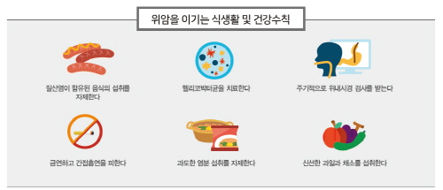 위암을 예방하는 것은 식습관이 가장 중요하다. 염분이 많은 음식을 피하는 습관을 갖고, 술과 담배, 간접흡연 역시 피하는 것이 좋다.