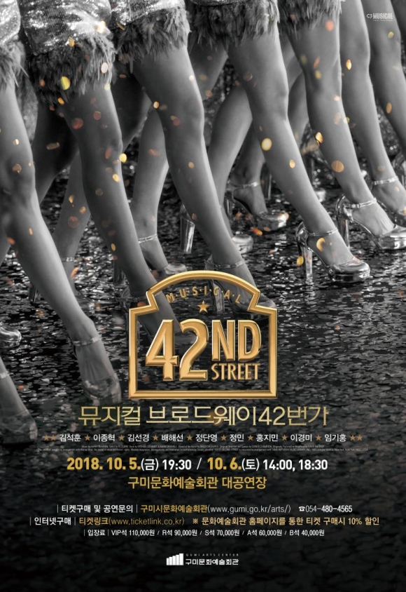 화려하고 경쾌한 무대가 돋보이는 세계 5천회 이상 공연기록을 가진 뮤지컬의 고전 ‘브로드웨이 42번가’가 구미에서 공연된다.