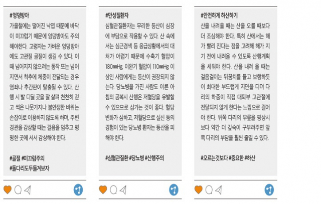 본격적인 가을로 접어들면서 색색의 옷을 갖춰 입은 단풍들이 화려하게 물들고 있다. 이를 즐기기 위해 이름난 산을 찾는 이들의 발걸음도 덩달아 늘고 있다. 등산은 누구나 쉽게 즐길 수 있는 레저지만 주의하지 않으면 생명을 위협하는 안전사고로 이어질 수 있다.