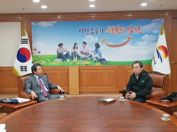 김충섭 김천시장이 22일 ‘김천제일병원 산후관리센터 폐업 결정’ 언론 보도와 관련해김천제일병원 강병직 이사장과 면담을 가졌다.