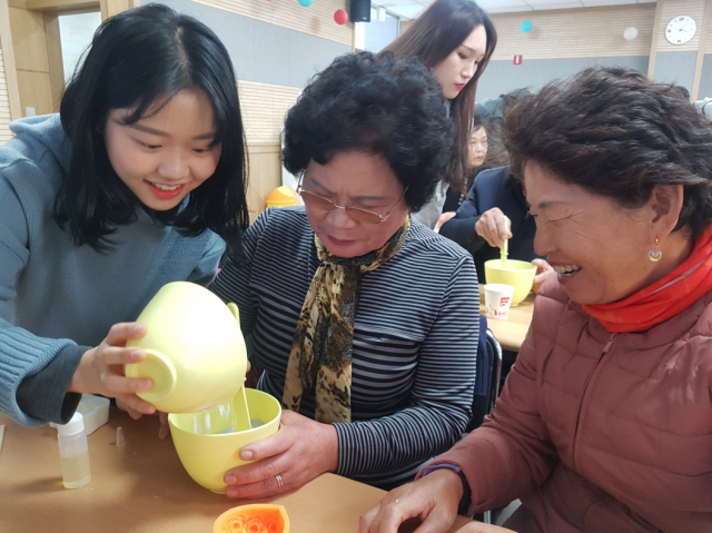 교육은 김천관내 노인 30여명을 대상으로 ‘치매인식 개선교육’, ‘석고방향제 만들기’등 치매예방 교육을 실시됐다. 이두호 작업치료과 교수를 비롯한 학생봉사자 15명이 참석해 어르신들의 큰 호응을 얻었다.