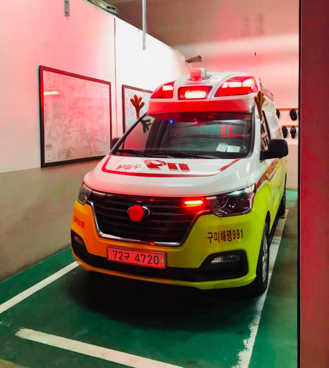 구미소방서(서장 전우현) 해평119안전센터의 루돌프 구급차가 화제다.