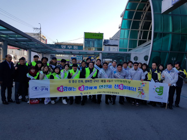 구미시가 10일 오전 11시 구미역 일원에서 재난안전네트워크 단체회원, 안전재난과 직원, 지역자율방재단원 등 100여 명이 참석한 가운데 '12월 안전점검의 날' 캠페인을 실시했다.