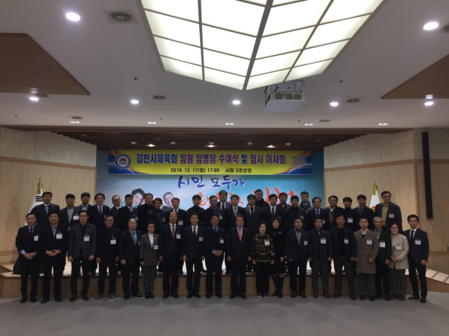 김천시체육회가 17일 시청 강당에서 임시 이사회를 열고 체육회 집행부를 이끌어갈 신임 부회장 11명, 이사 31명을 임명했다.