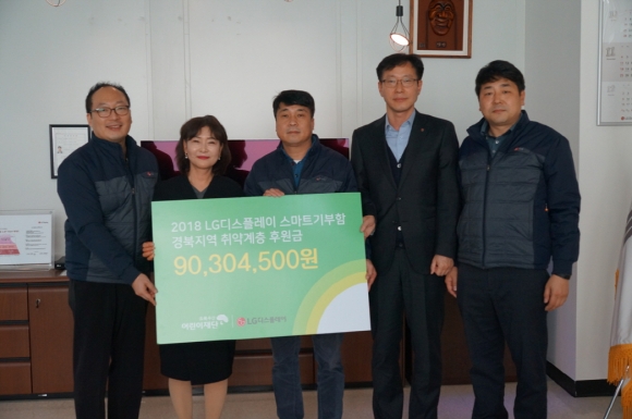 LG디스플레이(대표이사 부회장 한상범)가 14일, ‘LGDream Fund 전자기부함’ 구미지역 모금액 9천여만원을 초록우산어린이재단(본부장 김창연)에 기부했다.