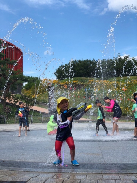 어린이들은 시원하게 뿜어져 나오는 분수를 맞으며 더위를 식힌다. 물총 놀이를 즐기는 아이도 많다. 분수 사이를 뛰어다니며 물총을 쏘다보면 더위는 저만치 달아난다.
