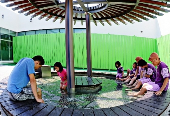 성주봉한방사우나를 찾은 이용객들은 족욕장에 삼삼오오 모여앉아 닥터피시들이 발 주변으로 모여드는 모습을 신기해하며 족욕을 즐겼다.