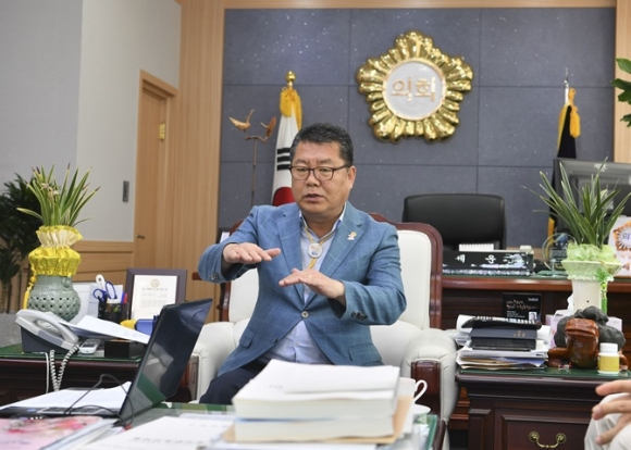 Q> 자유한국당 9명, 무소속 6명, 더불어민주당 2명이라는 다양한 목소리가 시의회에 전해졌습니다. 시의회 의장의 사명감과 향후 역점 추진상황이 있다면 말씀 부탁드립니다. A> 작년 7월 제8대 의회 출범과 함께 전반기 의장이라는 중책을 맡아 의회를 이끌어 왔습니다. 제가 제8대 전반기 의회를 이끌어 가는 의장으로서의 여러 역할 중 가장 중요하게 생각했던 것 중의 하나가 바로 다양한 색깔, 다양한 소리를 포용하는 것이었습니다.