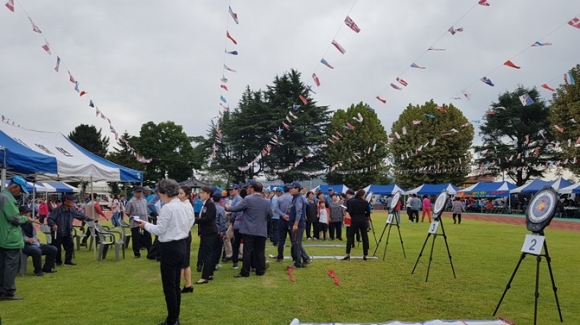 체육대회는 식전 공연행사를 시작으로 투호, 이어달리기, 팔씨름, 힘고누기, 고무신 던지기 등 5개 종목의 정식경기와 번외경기로 게이트볼 대회를 함께 진행했다.