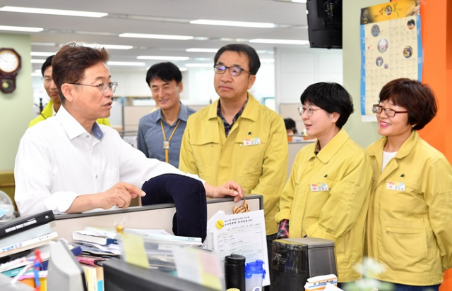이철우 경상북도지사는 27일 연일 방역에 매진하고 있는 아프리카돼지열병 방역상황실(동물방역과)을 방문해 질병발생현황을 보고받고 직원들을 격려했다.