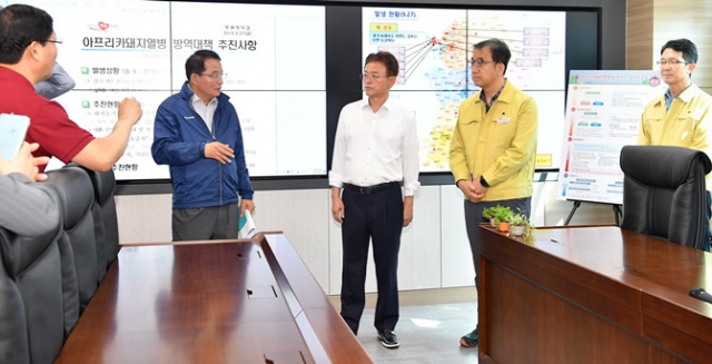 경북도는 아프리카돼지열병 발생에 따른 선제적 조치로 타시도 반입반출 금지조치를 취하여 타시도 축산차량 출입을 최소화해 왔으며 방역에 취약한 밀집사육단지의 단지 입구에 통제초소(6개소)를 설치하여 24시간 차량 및 사람출입을 통제하고 있으며 거점소독시설을 전 시군에 설치하여 24시간 차단방역에 매진하고 있다.
