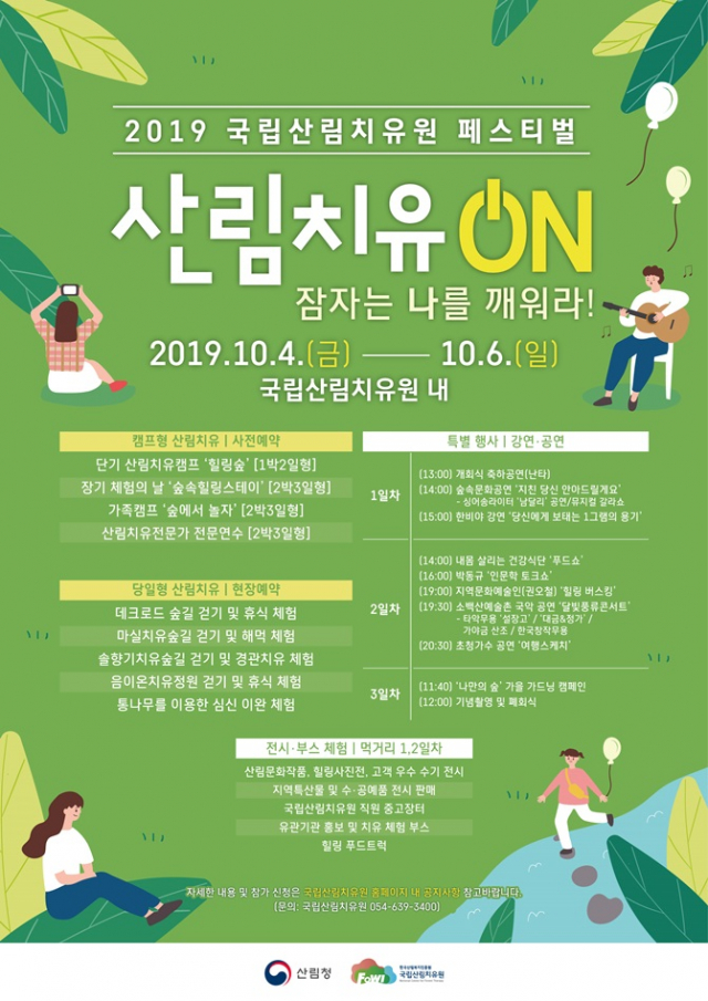 또한, 당일 참여하는 일반인들은 ‘맛보기 숲치유’ 숲길걷기, ‘맛보기 몸치유’ 등을 체험할 수 있다.