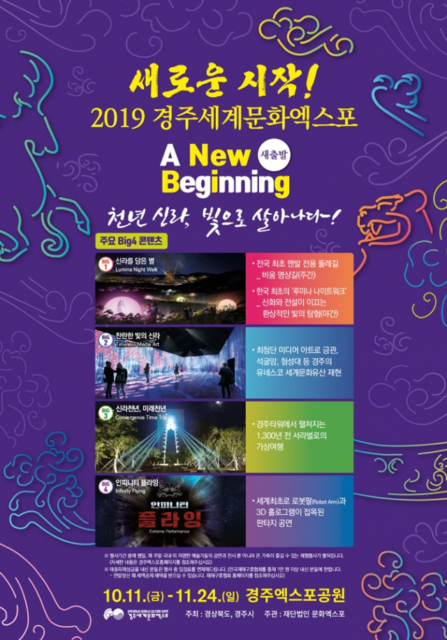경상북도는 10회째를 맞은 2019경주엑스포는 ‘단기 집중형 문화박람회’에서 벗어나 언제든 즐길 수 있는 ‘연중 상시 문화박람회’로 운영되는 첫회가 될 것이라고 밝혔다.