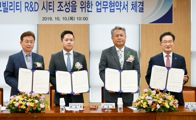 경북도는 10일 도청 회의실에서 영천시, ㈜퓨처모빌리티랩스, 대구대학교와 ‘퓨처 모빌리티 R&D 시티 조성’을 위한 업무협약을 체결했다고 밝혔다.