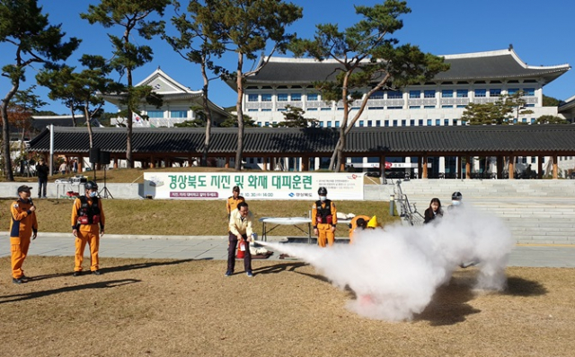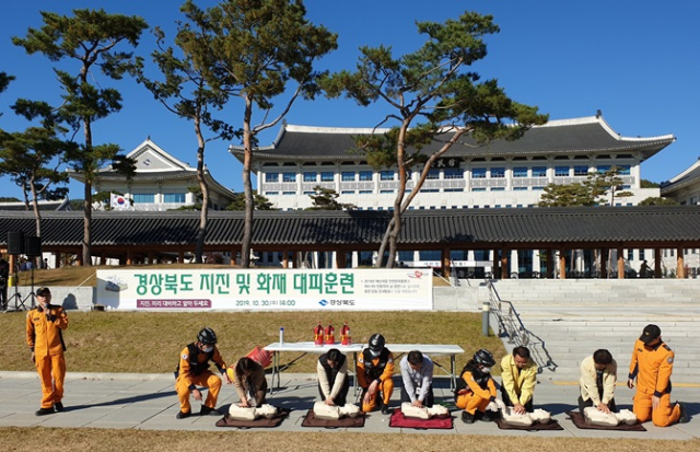 경상북도는 2019년 재난대응 안전한국훈련의 일환으로 30일 오후 2시부터 50분간 지진 및 화재 대피훈련을 실시했다.