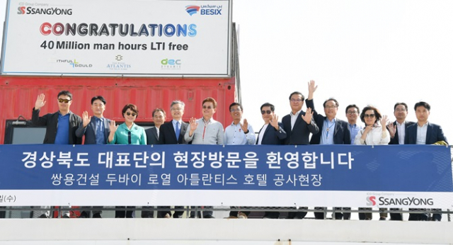 또한, 쌍용건설이 참여하고 있는 팜쥬메이라 리조트 건설사업은 16천여 객실 규모로 1조 3천억원이 투자되는 초대형 호텔 건설사업 현장을 둘러보면서 관계자들을 격려하고 도청 신도시 건설사업 등 경북의 대형 개발프로젝트에도 참여해줄 것을 적극 요청했다.