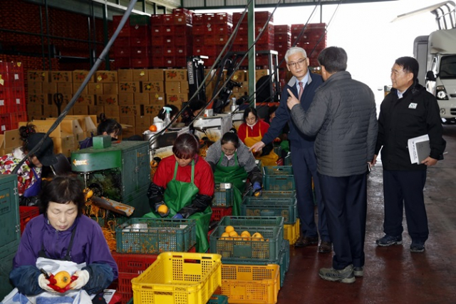 조 권한대행은 현장도 찾았다. 이날 오후 인평동 명가예찬영농조합법인 등 곶감 생산 업체 세 곳을 방문해 곶감을 깎고 건조하는 작업자들의 노고를 위로하고 애로점을 들었다.