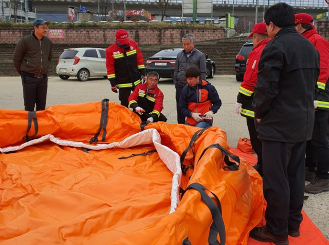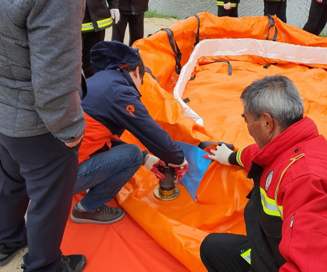 김천시는 이동식 저수조(pumpkin tank) 2식을 구입하여 지난 25일 사용방법을 숙지하기 위한 훈련을 실시했다.