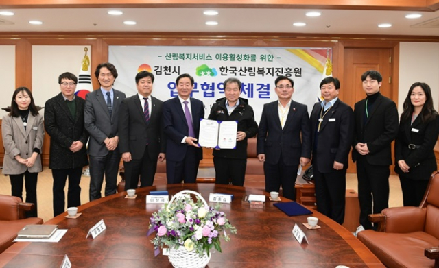 김충섭 김천시장은 “한국산림복지진흥원과 긴밀한 협력으로 김천시민 모두가 산림복지 수혜를 누리기를 바란다”면서 “앞으로도 사회 각계 다양한 분야에 산림복지서비스를 지원함으로써 시민의 삶의 질을 높이는데 최선을 다하겠다”고 말했다.