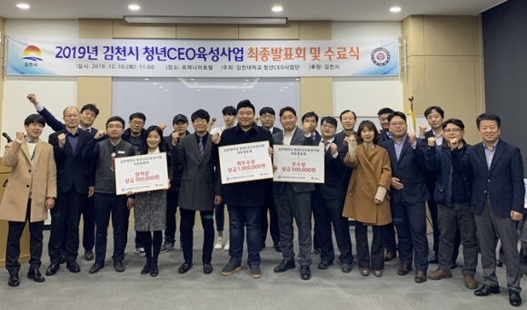 김천시(시장 김충섭)는 10일 오후 1시 로제니아 호텔 세미나실에서 2019년 김천시 청년CEO육성사업 최종발표회 및 수료식을 가졌다.