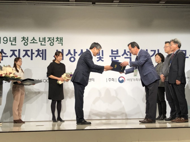 상주시(조성희 상주시장 권한대행)는 16일 서울 AW컨벤션센터에서 여성가족부가 주최로 열린 ‘2019년 청소년정책 우수지자체 평가’에서 우수지자체로 선정돼 ‘청소년정책연구원장상’을 수상했다.