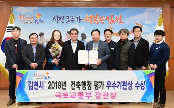 김천시(시장 김충섭)는 2019년도 건축행정 정부합동평가에서 일반부문 기초지방자치단체 우수기관상인 국토교통부 장관상을 수상하는 영광을 안았다.