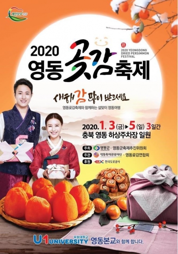 '맛있는 새해 선물, 행복多감 영동곶감축제'를 충북 영동군에서 내년 1월 3일부터 5일까지 영동천 하상수차장 일대에서 2020 영동 곶감 축제가 열린다.