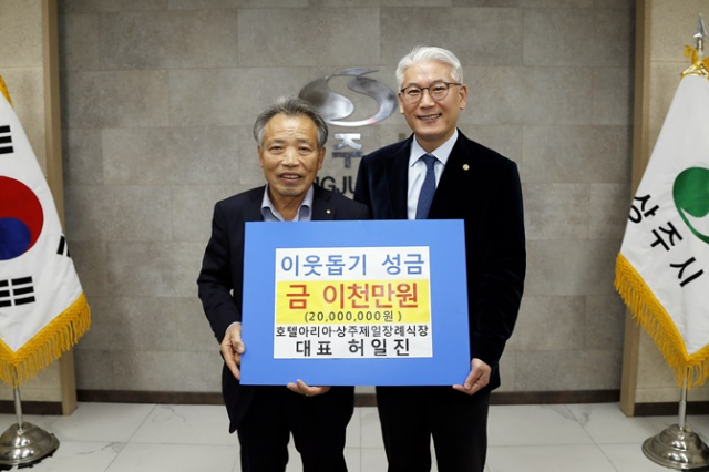 허일진 호텔아리아 및 상주제일장례식장 대표는 30일 상주시를 방문해 복지 사각지대에 있는 어려운 이웃을 위해 써달라며 성금 이천만원을 기탁했다.