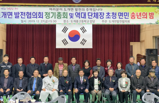 구미시 도개면(면장 유경숙)이 지난 27일 도개중고등학교 대강당(드림관)에서 도개면발전협의회(회장 김교성) 주관으로 역대 단체장들과 현 단체장, 임원 및 면민 등 200여명이 참석한 가운데 2019년 송년의 밤 행사를 개최했다.