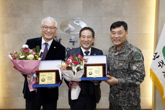 감사패는 서욱 육군참모총장을 대신해 50사단 이택수 부사단장이 조성희 상주시장 권한대행과 정재현 상주시의회 의장에게 전달했다.
