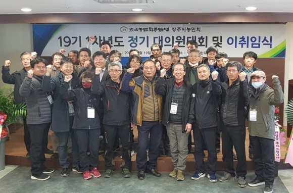 전국농민회총연맹 상주시농민회는 19일 명실상감한우 홍보테마타운 2층 회의실에서 농민회 회원 및 내빈 200여 명이 참석한 가운데 18기·19기 회장단 이·취임식을 개최했다.