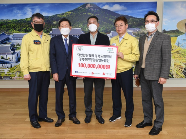 한돈협회 경북도협의회(회장 최재철)와 낙동육우협회 경북도지회(회장 조명식)는 9일 도청을 찾아 코로나19 확산으로 어려움을 겪고 있는 도민들을 위해 써 달라며 성금 1억 2천만 원과 1천만 원 상당의 우유를 경북사회복지공동모금회에 기탁했다.