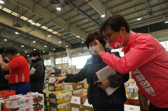 이어서 구미시농산물도매시장을 방문한 김후보는 반갑게 맞이하는 상인들을 만나 농산물 거래현황과 시장 개선사항 등을 청취한 후, “코로나19 여파로 한동안 고초를 겪었던 농산물도매시장이 조금씩 활기를 되찾은 것 같아 다행스럽게 생각한다. 구미의 질 좋고 싱싱한 농산물들이 제값을 받고 거래될 수 있도록 새로운 판로 개척 등 시장 활성화를 위해 정성을 다해 나가겠다”고 약속했다.