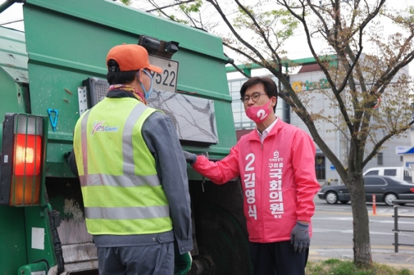 4⁃15총선 경북 구미시(을) 미래통합당 김영식 국회의원 후보는 13일 아침 환경미화원들과 농산물도매시장 상인들을 만나 현장의 애로사항 등을 청취하고, 근무여건 개선, 시장 활성화 방안 등을 논의했다.